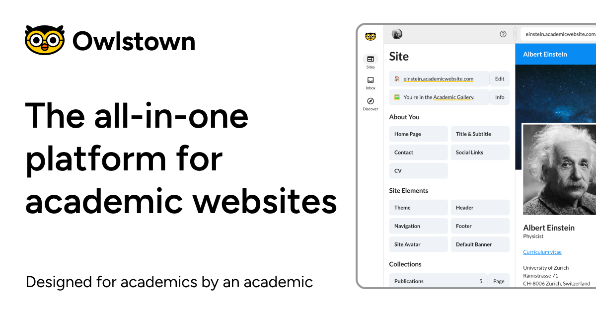 Owlstown is an amazing platform for the creation of academic websites.